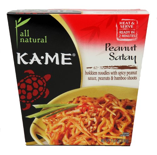 Mix, Heat and Eat in Box! Ready in 2 minutes. No water needed. Authentic premium traditional. For more than 30 years, Ka-Me has explored the cuisines of the Orient, seeking traditional foods and seasonings that used to be found only in Asian grocery shops. Authentic Malaysian recipe. Considered the crossroads of the Far East, Malaysia assimilated cultures and cuisines from China, India, Thailand and the Middle East. Peanut Satay, Malaysia's signature dish, delicately blends exotic spices, coconut milk, tamarind and fruit and crunchy peanuts into a robust sauce for Hokkien noodles. Served as everyday fare throughout Southeast Asia, Hokkien noodles, originally from China, are perfect for any stir-fry. The orient has a rich heritage of symbols and folklore. Ka-Me (Kah-May) translated, means turtle. According to Japanese legend, the turtle signifies a long and happy life, and longevity flows from native ingredients. Traditional Asian food is simple, drawing from local spices and healthful ingredients. Asian cuisine reveals a premium quality that can only come from authenticity. Ka-Me will delight you with an authentic taste of Asia. Product of Thailand.